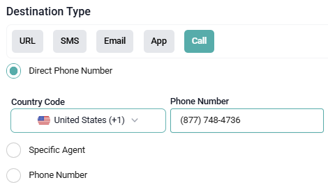 Call - this allows you to prompt the user to make a phone call to one of these three resource types: