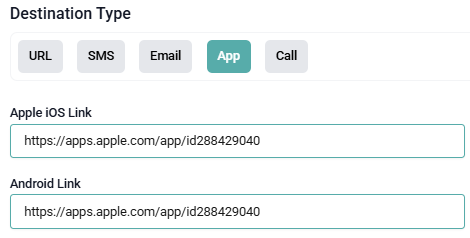 URL - this allows you to redirect the mobile device to an internet resource such as a website or PDF.